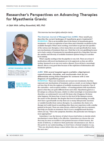 Clinician Perspectives on Diagnosing and Managing Generalized Myasthenia GravisOctober 31st 2025A Q&A with Richard Nowak, MD, MS.