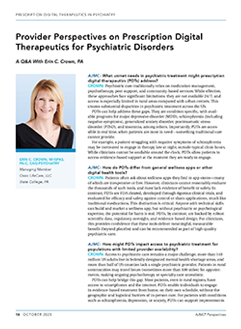 The Growing Role of Prescription Digital Therapeutics in the Treatment of Psychiatric Disorders