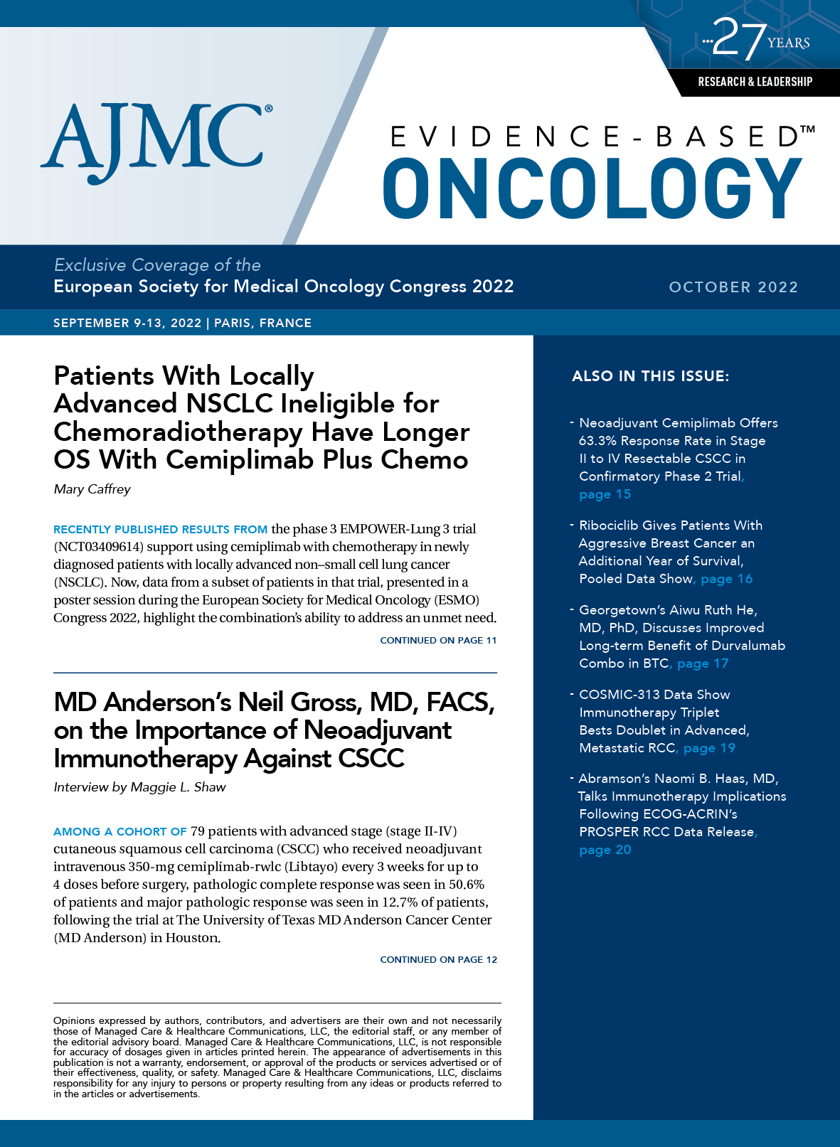 - Exclusive Coverage of the European Society for Medical Oncology Congress 2022