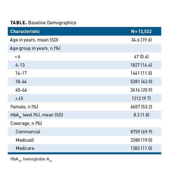 The analysis included 12,522 individuals with T1D. Baseline demographic characteristics are presented in the