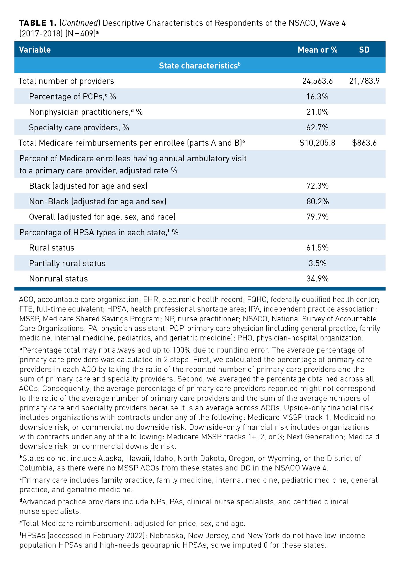 Organizational Factors Associated With Variation in Primary Care Providers in ACOs