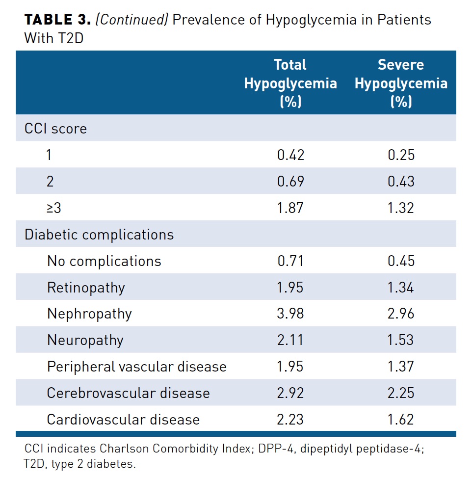 - The prevalence of total and severe hypoglycemia in patients with T2D was 1.38% and 0.96%, respectively.