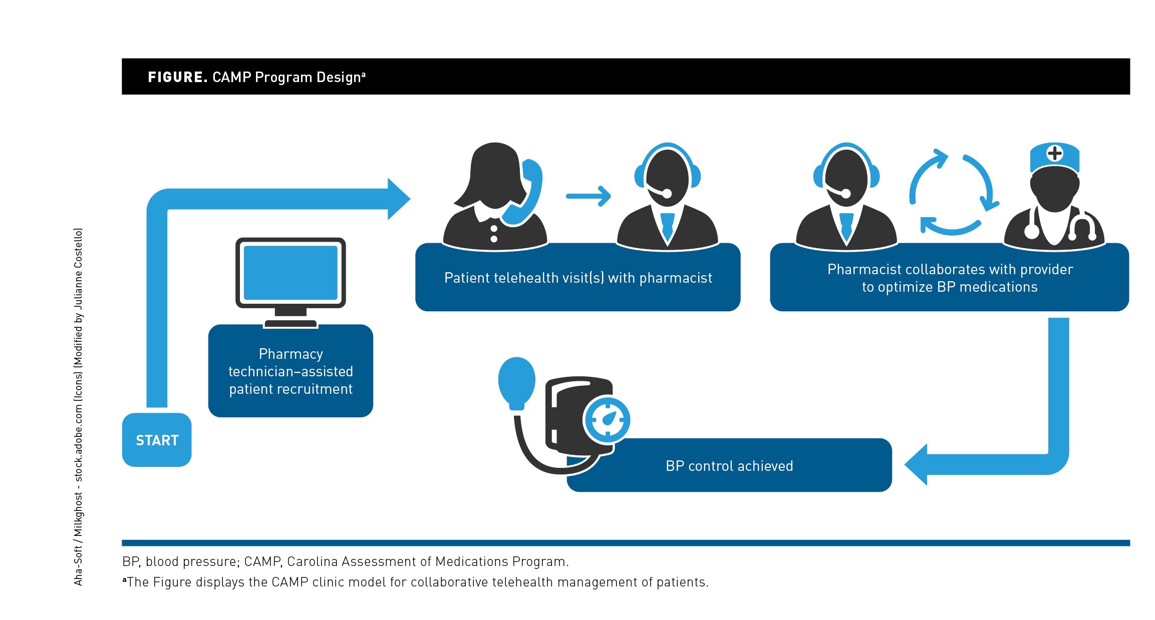 Primary care is evolving, with increased emphasis on guideline-directed care and outcomes-based payment models. Providers face challenges in providing all the necessary patient care within the clinic visit.16 Compounding this, patients frequently struggle to implement the care plan independently. Following a primary care visit, up to 30% of patients fail to fill prescriptions, 50% of those who do fill their prescriptions take them incorrectly, 62% face confusion about their care following an office visit, and 31% forget the medical information provided; all these lead to patients often returning in worse condition.17 Pharmacists, who are uniquely educated and positioned within the care team, address these gaps by helping patients understand their conditions and medications, supporting adherence strategies, and empowering them to implement care plans that include HBPM effectively. Through telehealth, pharmacists work collaboratively with patients in low-stress environments, facilitating shared decision-making and offering personalized support. Pharmacists are also able to have more frequent touchpoints with patients compared with traditional provider visits in most cases. By tailoring regimens and addressing barriers, pharmacists minimize unnecessary follow-up messages and contribute to clinical goal achievement. Although our study did not directly measure provider follow-up burden, the faster and sustained BP control observed in the CAMP-enrolled group suggests a reduced need for additional provider visits or provider-patient communications due to therapeutic inertia or care plan confusion.